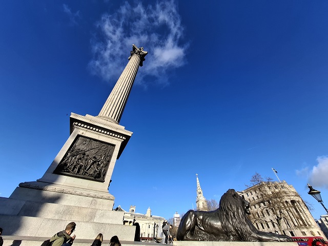 ネルソン提督の像。四隅を固めるライオンが、大きかった!