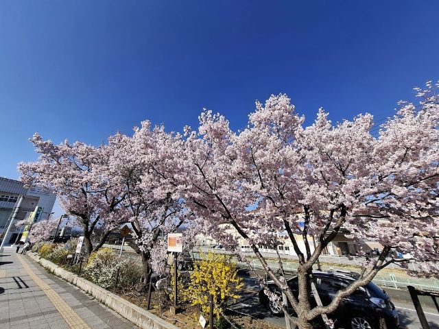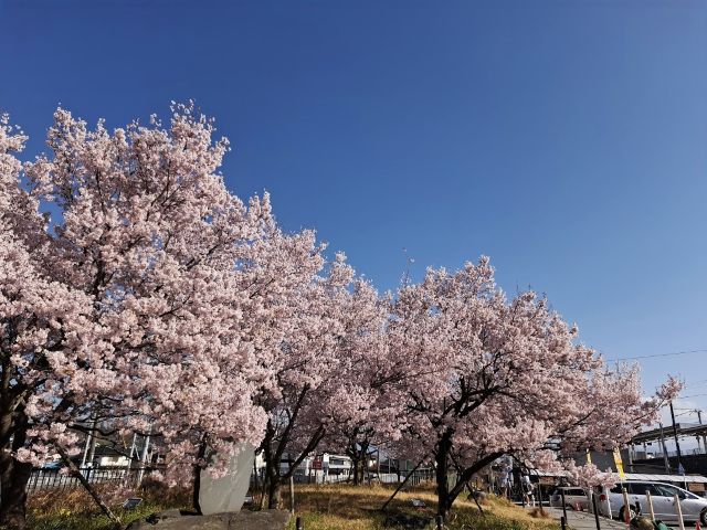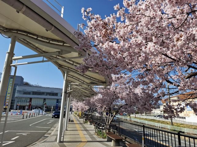 駅前の図書館へ行った際、韮崎駅のターミナルでも満開の桜を観ることができた。気持ちのいい季節だ。