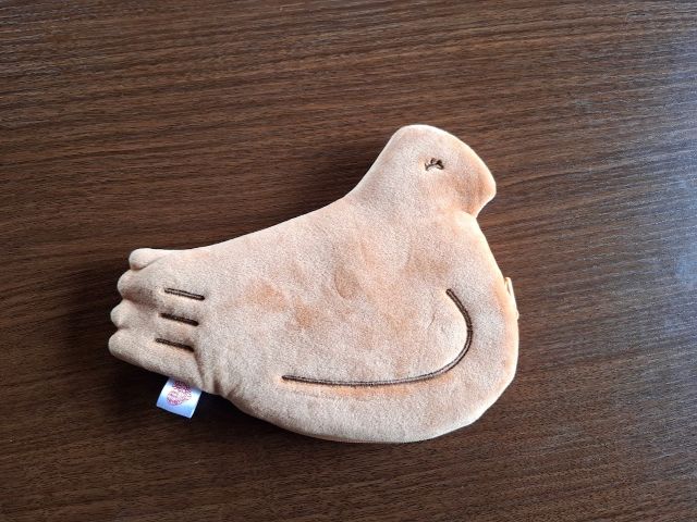 友人からもらった「鳩ぽっぽーち」。もふもふで、ソーキュート♡鳩サブレー1枚入れてくれていました。