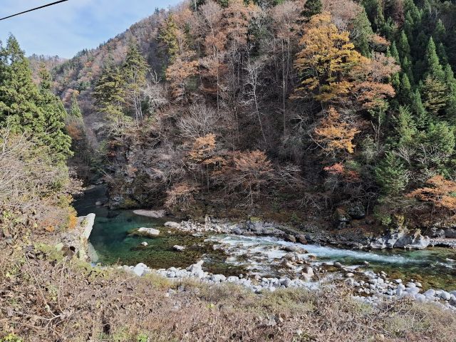 川沿いをちょっと走って、またもとの道へと引き返したのだが、エメラルドグリーンに澄んだ川を見ることができた。