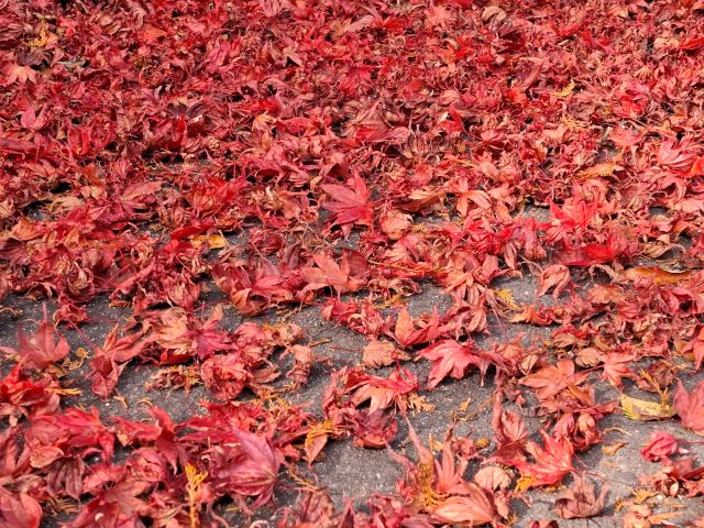 ほとんど散っていましたが、紅葉(もみじ)が真っ赤でした。