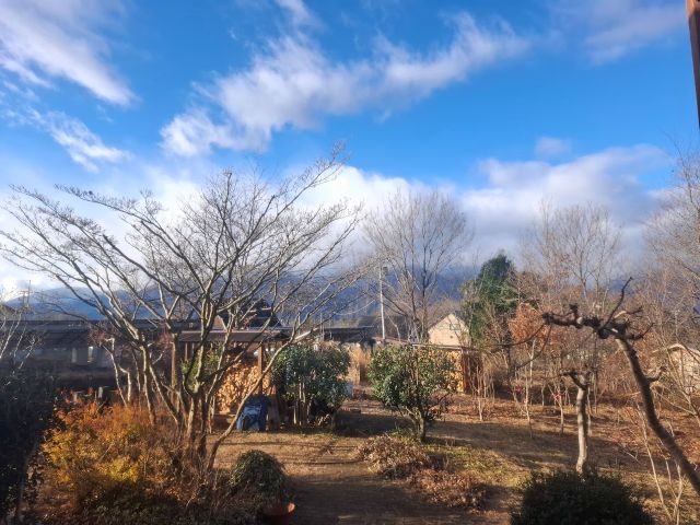ウッドデッキ側の庭にも、青空が広がっていました。