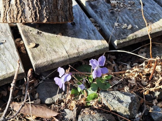 菫はまだまだ、あちらこちらに。夫が栽培している椎茸の脇にも。