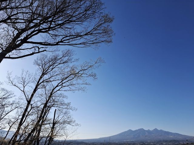 庭から見た北側の風景。夕刻の八ヶ岳です。
