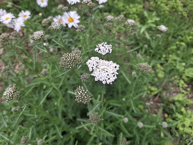 庭では、そこここに繁殖したノコギリソウが咲き始めました。