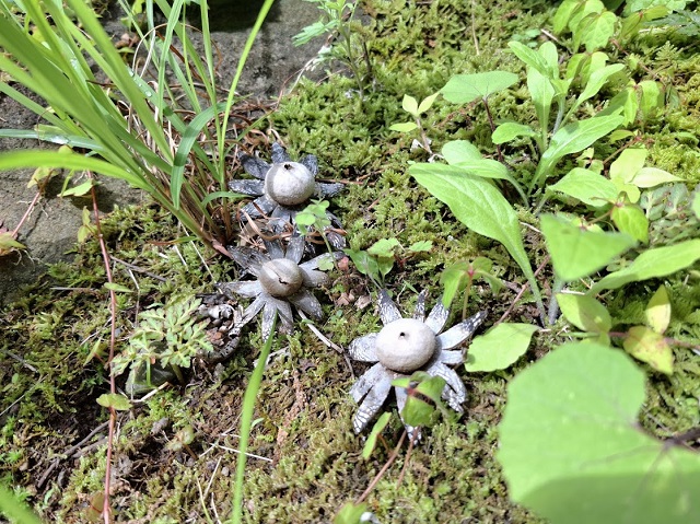 家の北側の影になる場所には、星の湿度計とも呼ばれるきのこ「ツチグリ」が水を吸って膨らんでいました。