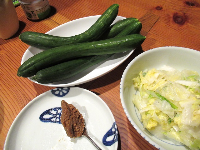 胡瓜は、まず、そのままかじります。味噌やマヨネーズをつけて。