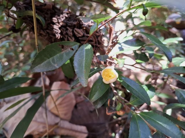 後山には、茶の花が咲いていました。初めて見る可愛らしい花でした。