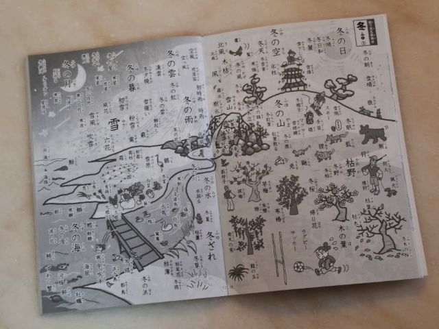 には、春夏秋冬の自然の風景や暮しに寄せた季語が、イラストでわかりやすく載っている。新年の季寄せもある。