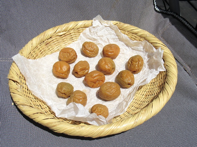 前回同様、5日干した。3日干すというのがスタンダードらしいが、梅の大きさにも寄るようだ。大粒だし、途中雨も降ったので、ここも慎重に5日干した。