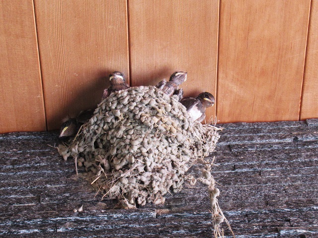 友人宅で撮らせてもらった「燕の子」。4羽いました。あと2日ほどで巣立つそうです。