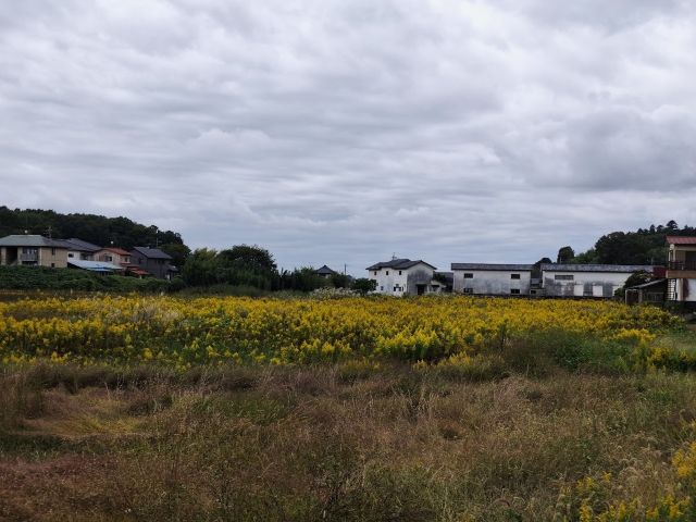 とぼとぼ歩いた道から撮った「益子陶芸村」。そこに時計はありました。いくつかのお店が集まっている場所で、トイレもあって助かった。