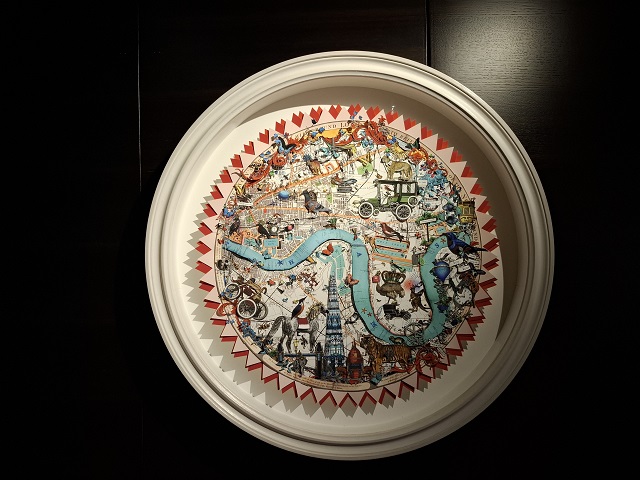 通路に飾られていた切り紙のロンドン地図。真ん中下のとんがったビルが「ザ・シャード」です。