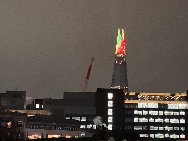 帰る頃には、「ザ・シャード」がクリスマスツリー風にライトアップされていて、可愛らしかった。
