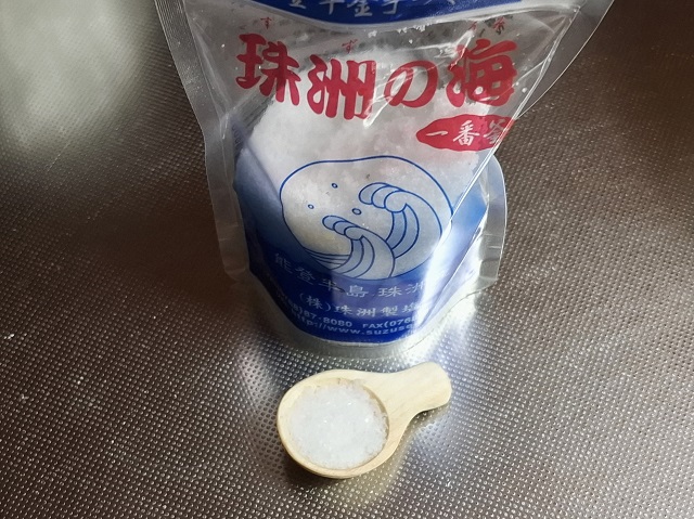珠洲の塩を、量っています。