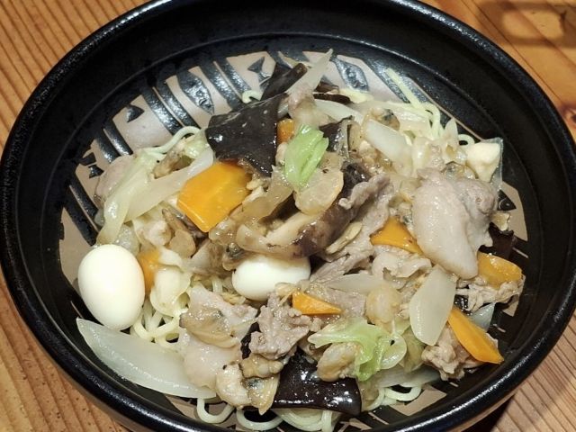 夫が作ってくれた五目焼きそば。中華丼の具です。