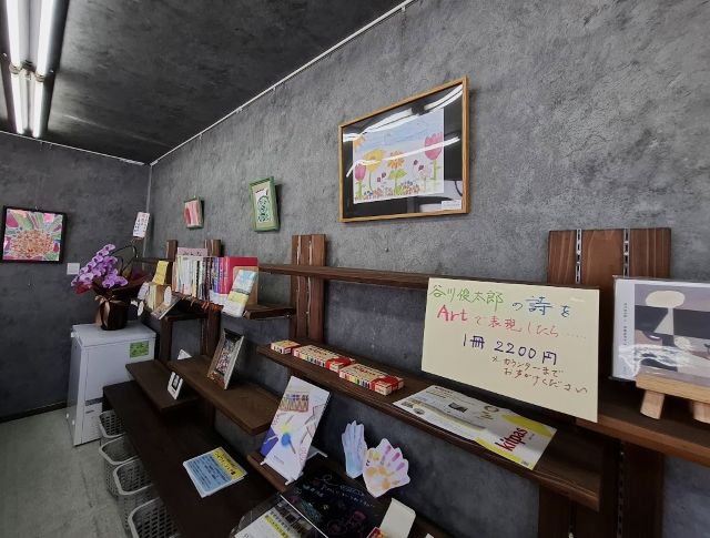 手作りアートが飾ってあったり、本が並べてあったり、地元の野菜や果物を販売していたり。楽しいお店です。