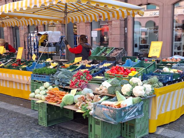 マルクト広場で火・金・土曜に開催される朝市。7時から14時まで。