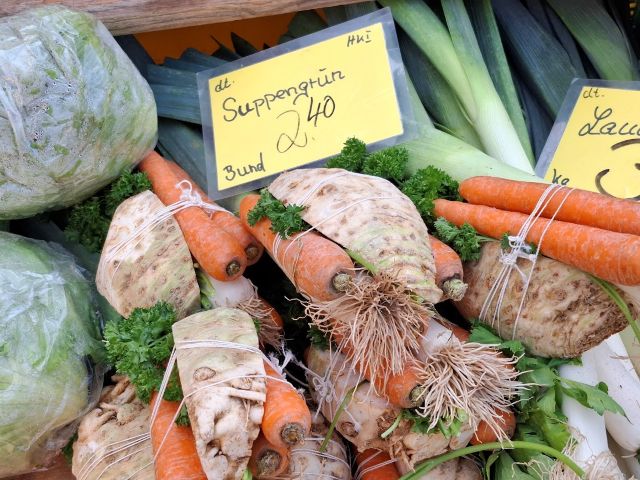 どの八百屋さんにもあったこれは、スープの素のようです。大きな塊はセロリの根っこだと思います。ドイツはスープもおいしいんですね。