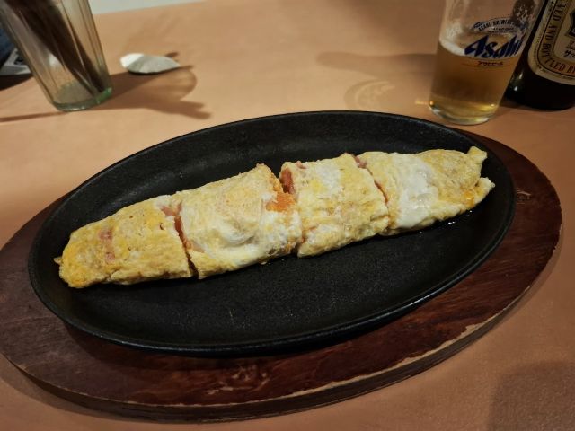 そして、鉄板焼きの「とよこや」では、焼きたての明太子入り出汁巻き卵に舌鼓を打ち、ビールを楽しんだ。カウンターだけなのに狭くは感じない居心地のいい店だった。女性の店主のお人柄なのだろう。