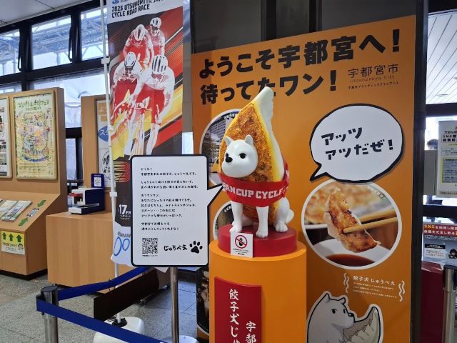 JR宇都宮駅で。宇都宮餃子犬じゅうべえ、だそうです。友人も、ここで写真撮ってた(笑)