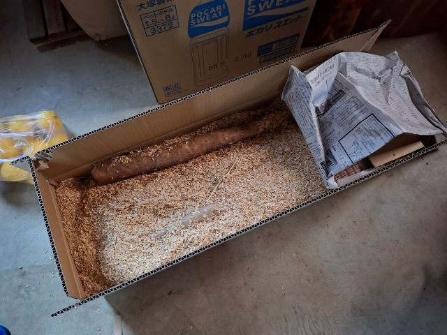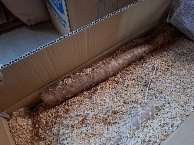 細長いダンボール箱にたっぷりと籾殻が入っていて、そのなかに長い長い長芋が並んでいた。