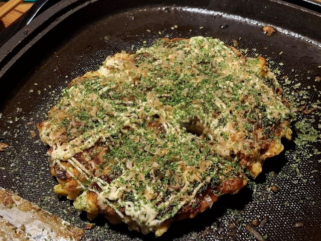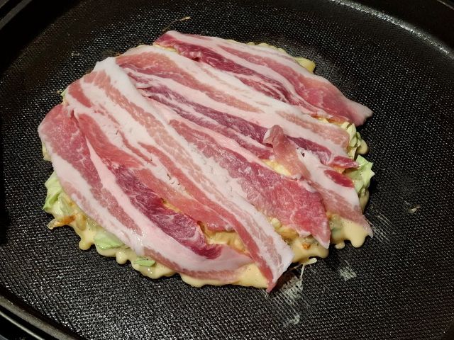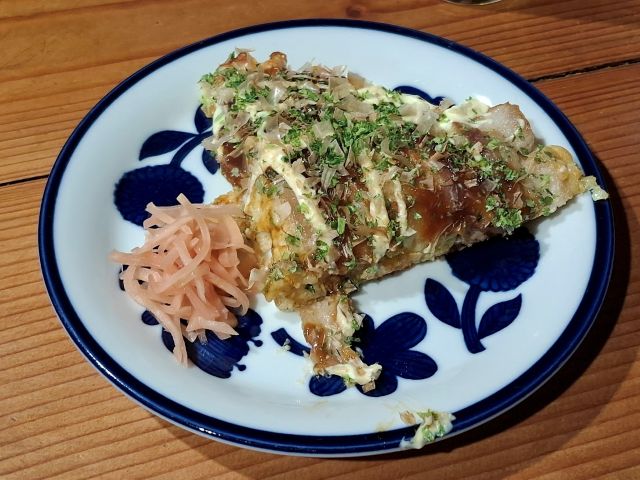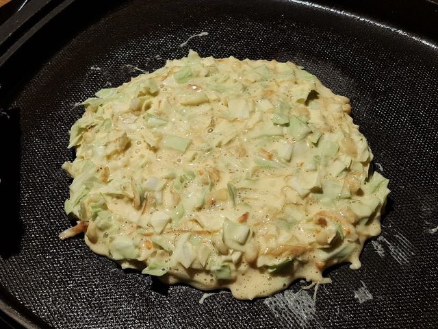 そんなふうにして焼いたお好み焼きで、いつもとは違う食感を楽しめた。