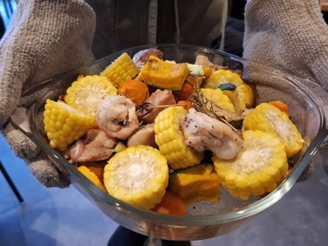 ぎゅうぎゅう焼き。夏野菜が甘~く、ハーブの利いた鶏がさっぱりしていました。