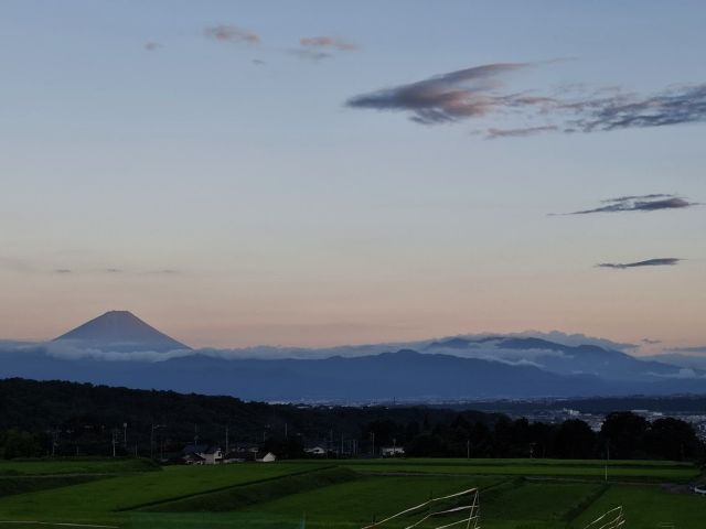 カフェの前から見た、夕刻17時の富士山。まだ、昼間のように明るいですね。