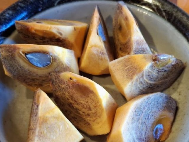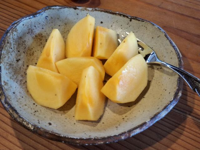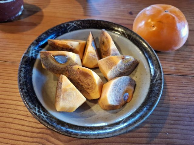 そういえば、干し柿にはよく黒っぽくなったものがあって、それも同じくタンニンだとか。干し柿の斑点には違和感も持たなかったのに、切って黒いと驚くとは。