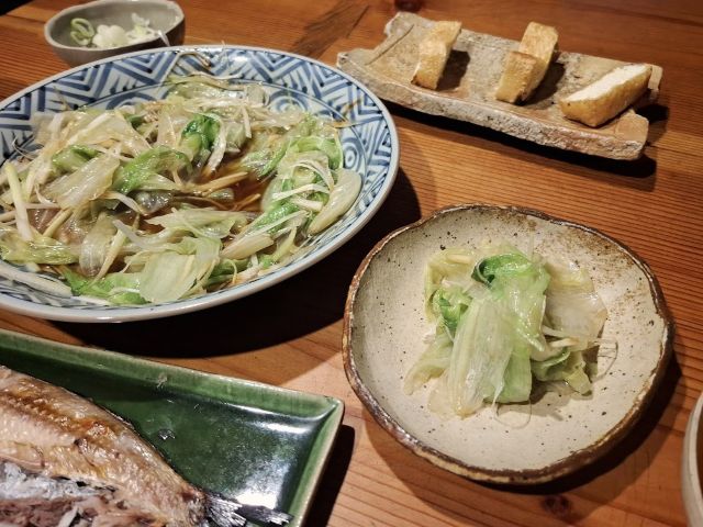 レタスのお浸しも、丸々1個分。生姜たっぷりすぎて、少し辛かった。