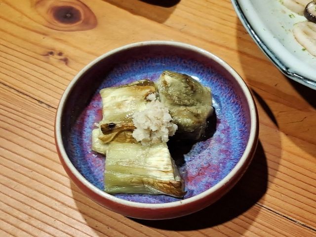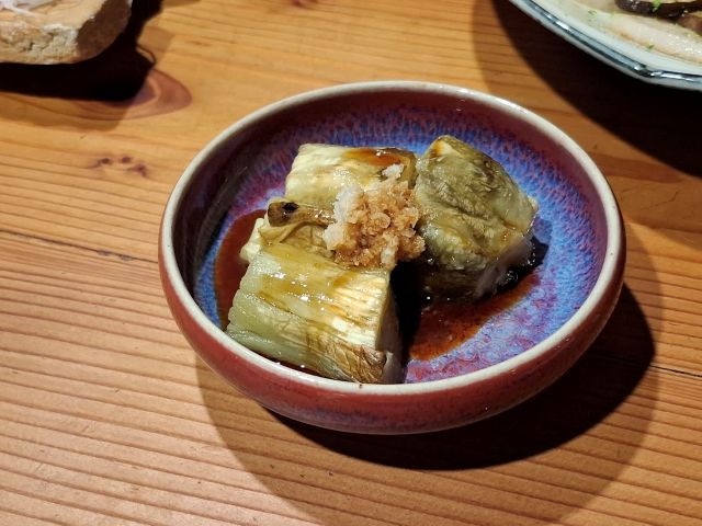 久しぶりにガスの魚焼きで茄子を焼き、熱々の皮を剝いて切り分け、器に盛ってから、一瞬止まった。