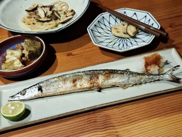 焼き茄子と秋刀魚の夕餉。秋の食卓そのものだ。