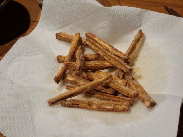 豚柳川には、畑で堀りたての牛蒡をいただいて、ささがきにして入れた。味わいが濃く、煮れば甘くやわらかい。