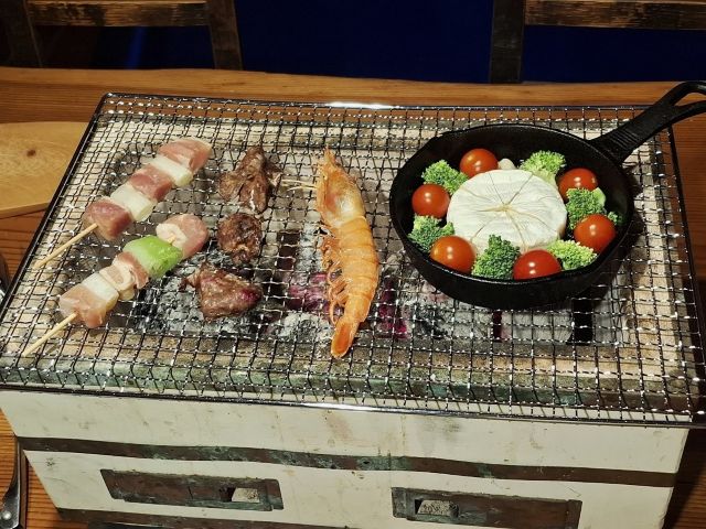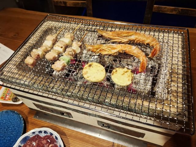 卓上七輪で、焼き鳥、レバー、海老、じゃが芋を焼こうと準備したのだが、あー、食卓塩切らしてた! となったのだった。