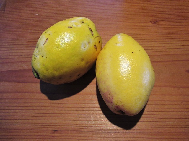 春に赤い花を咲かせる木瓜(ぼけ)と同じくバラ科ボケ属の植物だそうです。