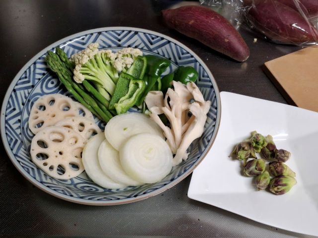 ほかにもいろいろ野菜を切って、天麩羅の夕餉にした。