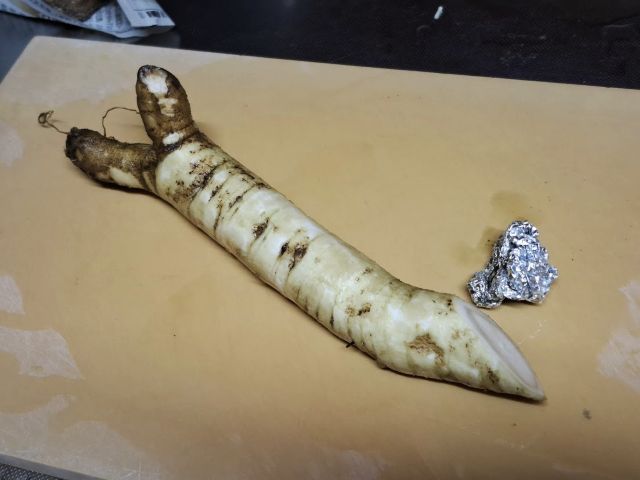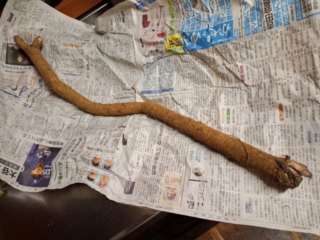 写真に撮ると細く見えますが、細めの山芋と同じくらい太かったんです。