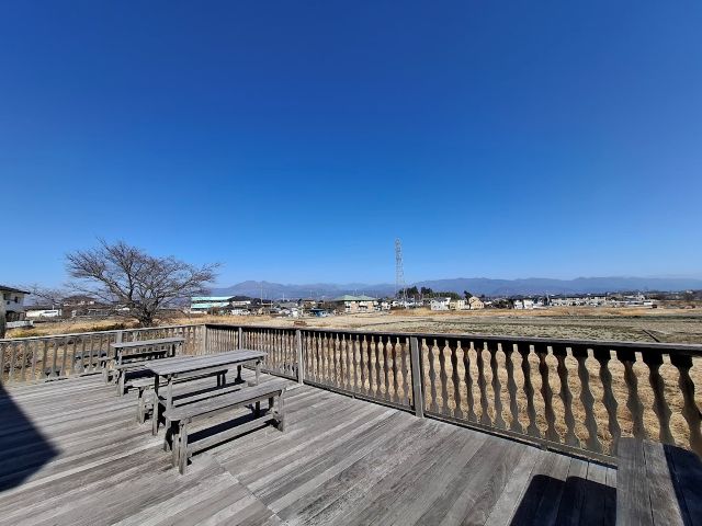 開放感あふれるテラス。畳の休憩室もあります。