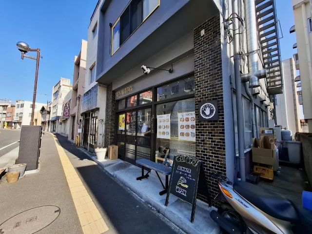 シンプルな外観。逆光ですが。