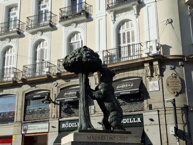 PUERTA DEL SOL(プエルタデルソル)の「熊とイチゴノキ」像。マドリードの紋章です。