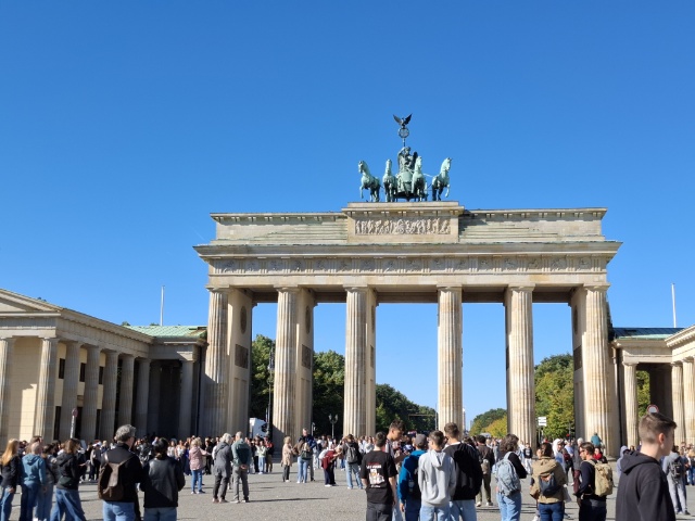 ブランデンブルグ門。東西分裂時代、門は閉鎖されていたそうです。たくさんの観光客が訪れていました。