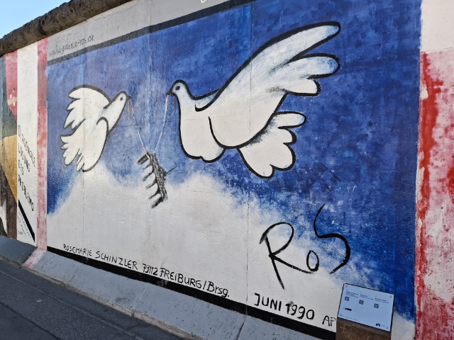 現存する壁に、世界中のアーティストが平和へのメッセージを表現している青空ギャラリーだ。