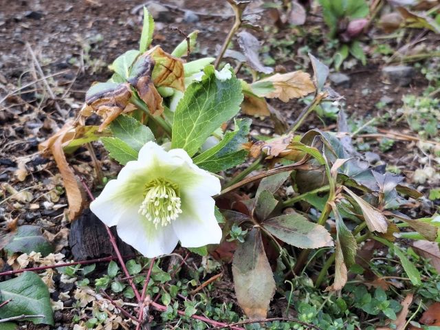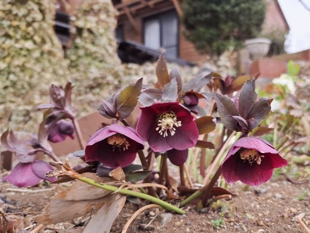 2月の終わり、庭のクリスマスローズが咲き始めた。
