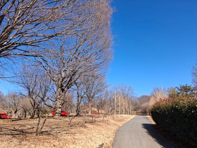 葉を落とした木々が、青空へと枝を伸ばしていました。