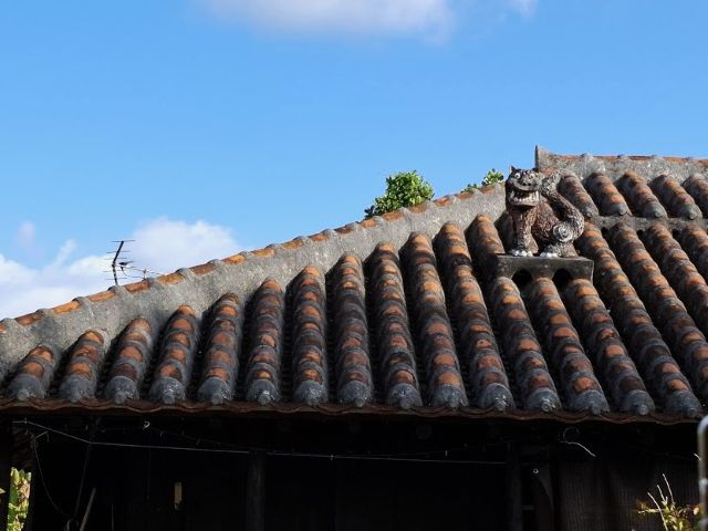 みな口を開けています。口を開けているのは、魔物や災いを威嚇し火を吐いて悪霊を退ける役割があるのだそう。口を開けた屋根や家の外にいるシーサーは男の子。口を閉じた女の子のシーサーは家のなかにいるのだとか。