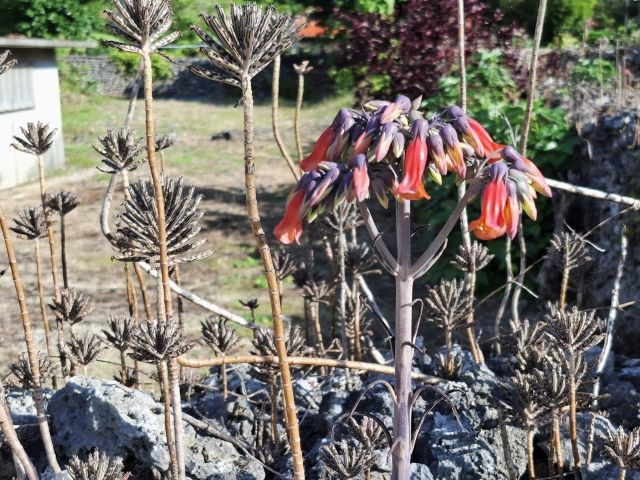 帰り道、見たことのない花に遭遇。葉っぱ(?)だけのものは、あちらこちらに生えていました。「錦蝶(きんちょう)」といって、花を咲かせているところはなかなか見られないそうです。別名は「デラゴネンシス」で、マダガスカル原産。常緑多年草の多肉植物だとか。