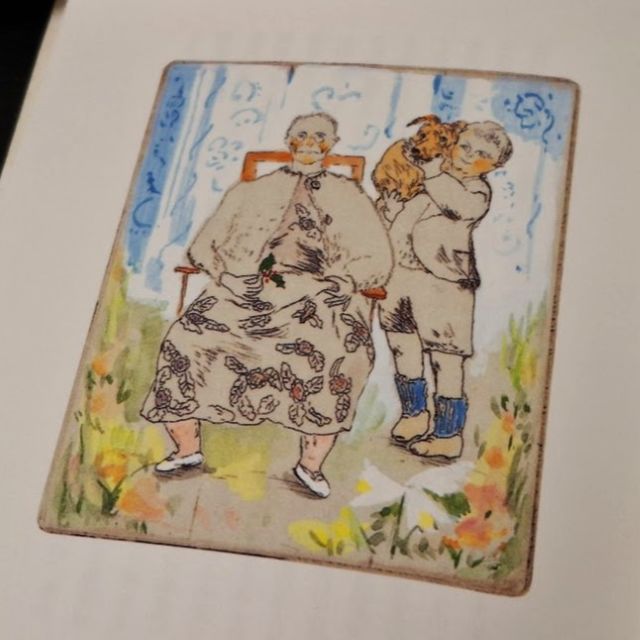 山本容子の銅版画の挿絵です。60歳を過ぎた親友と、バディー(僕)と、ラット・テリアのクイーニー。